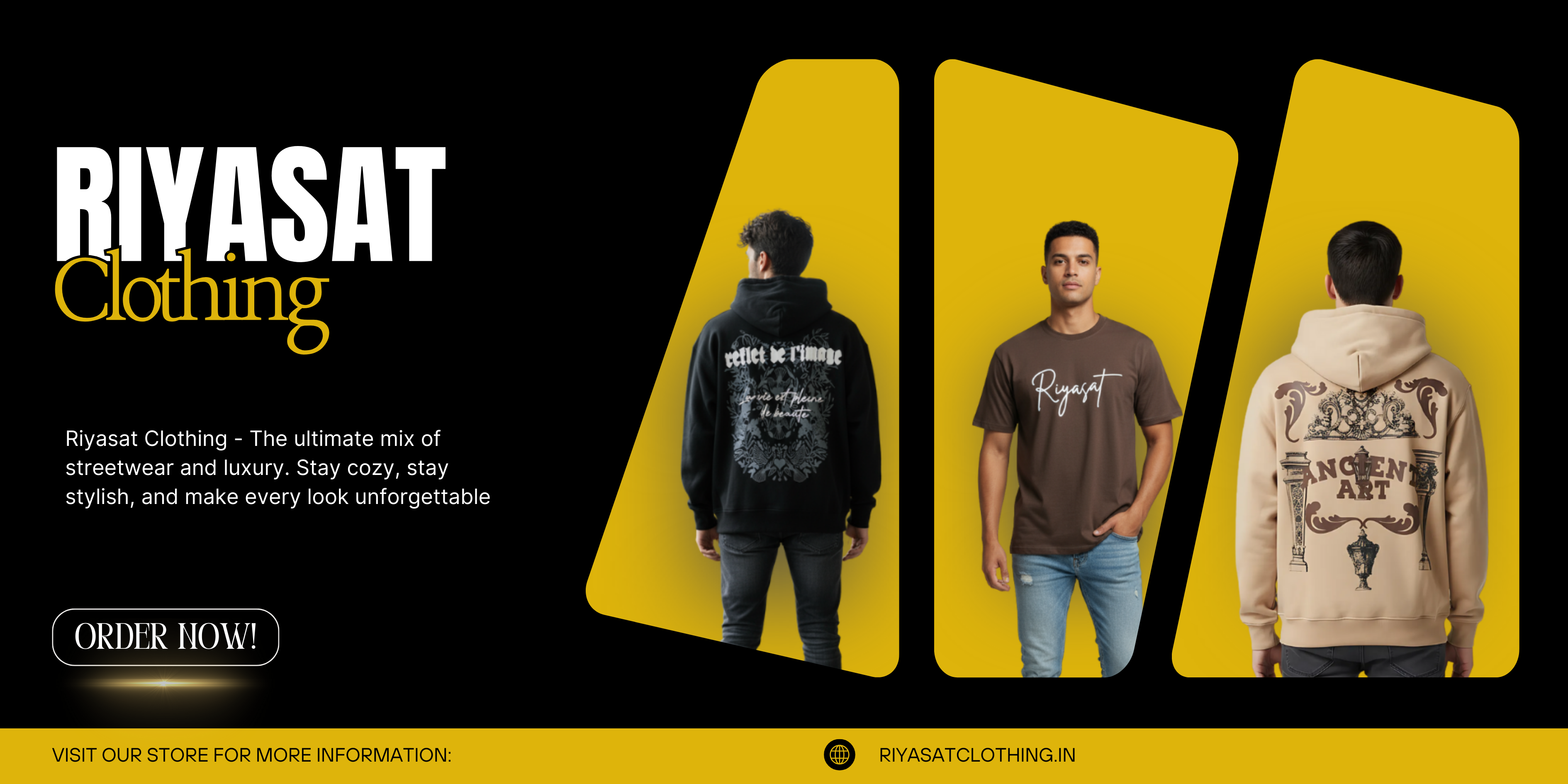Riyasat Clothing is a premium clothing brand offering high-quality hoodies, t-shirts, and apparel designed with comfort and style in mind.